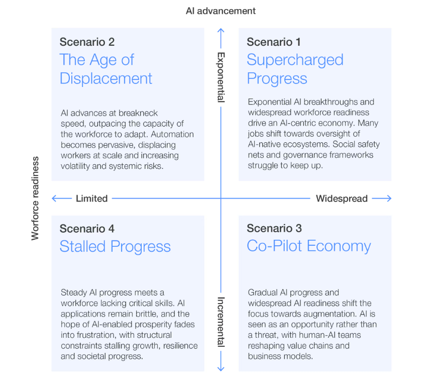 Fonte: World economic forum (2026). Four futures for jobs in the new economy: AI and talent in 2030